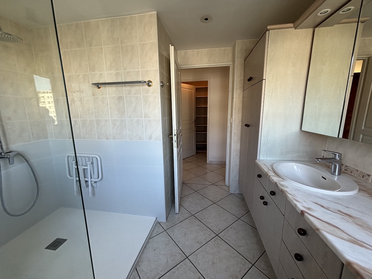 - Une première chambre avec sa salle de douche privative, grands placards, (18,86 m2), et son balcon,