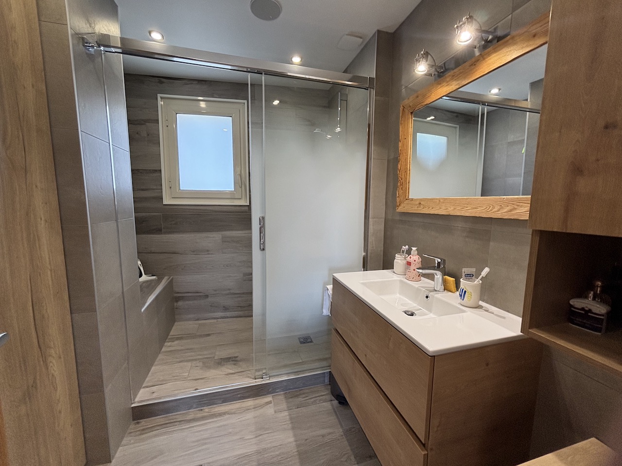 - Une grande salle de douche à l'italienne avec fenêtre, emplacements pour machine à laver et sèche linge.