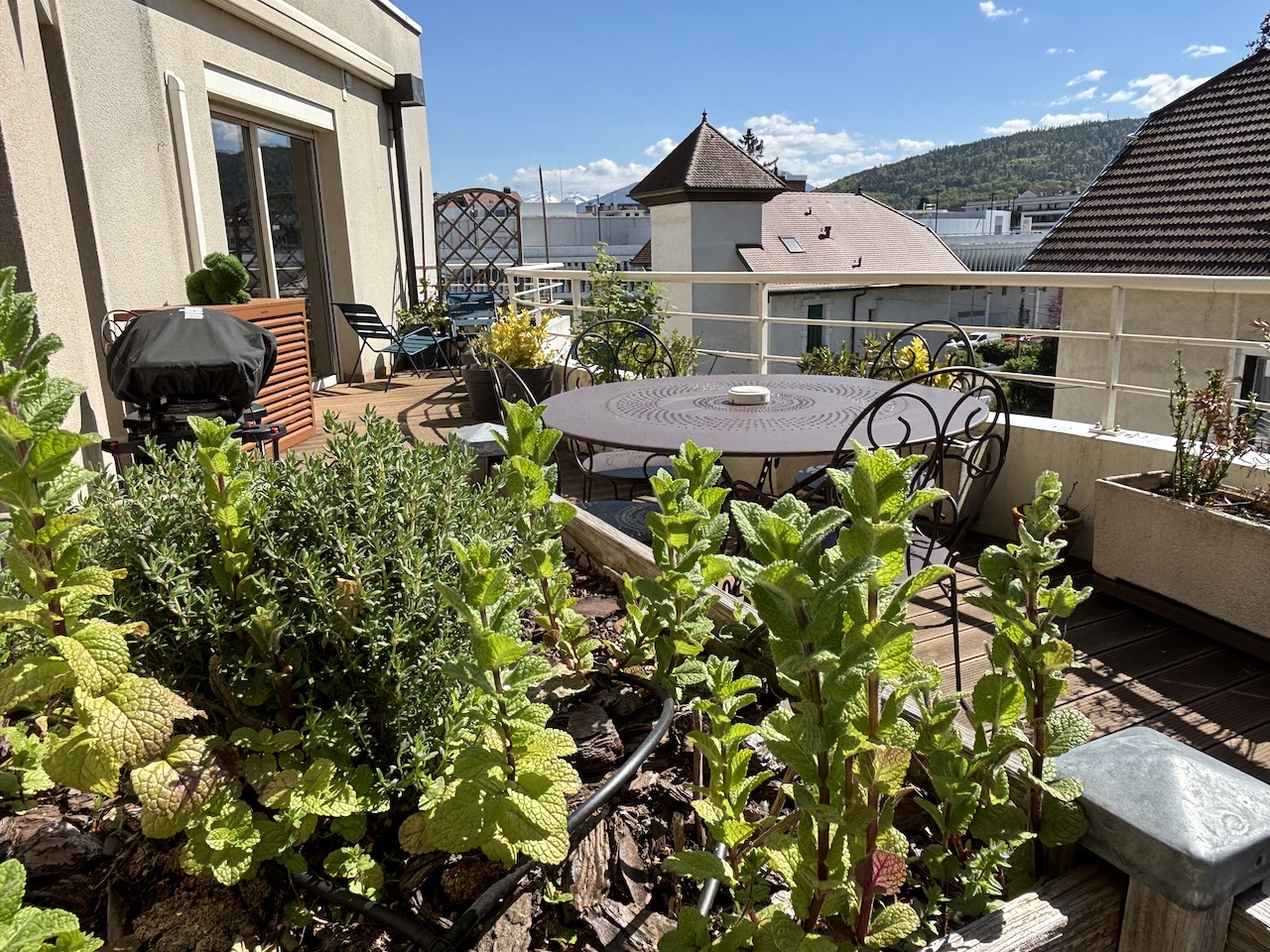 - Terrasse sud ouest de forme originale , vue Semnoz,